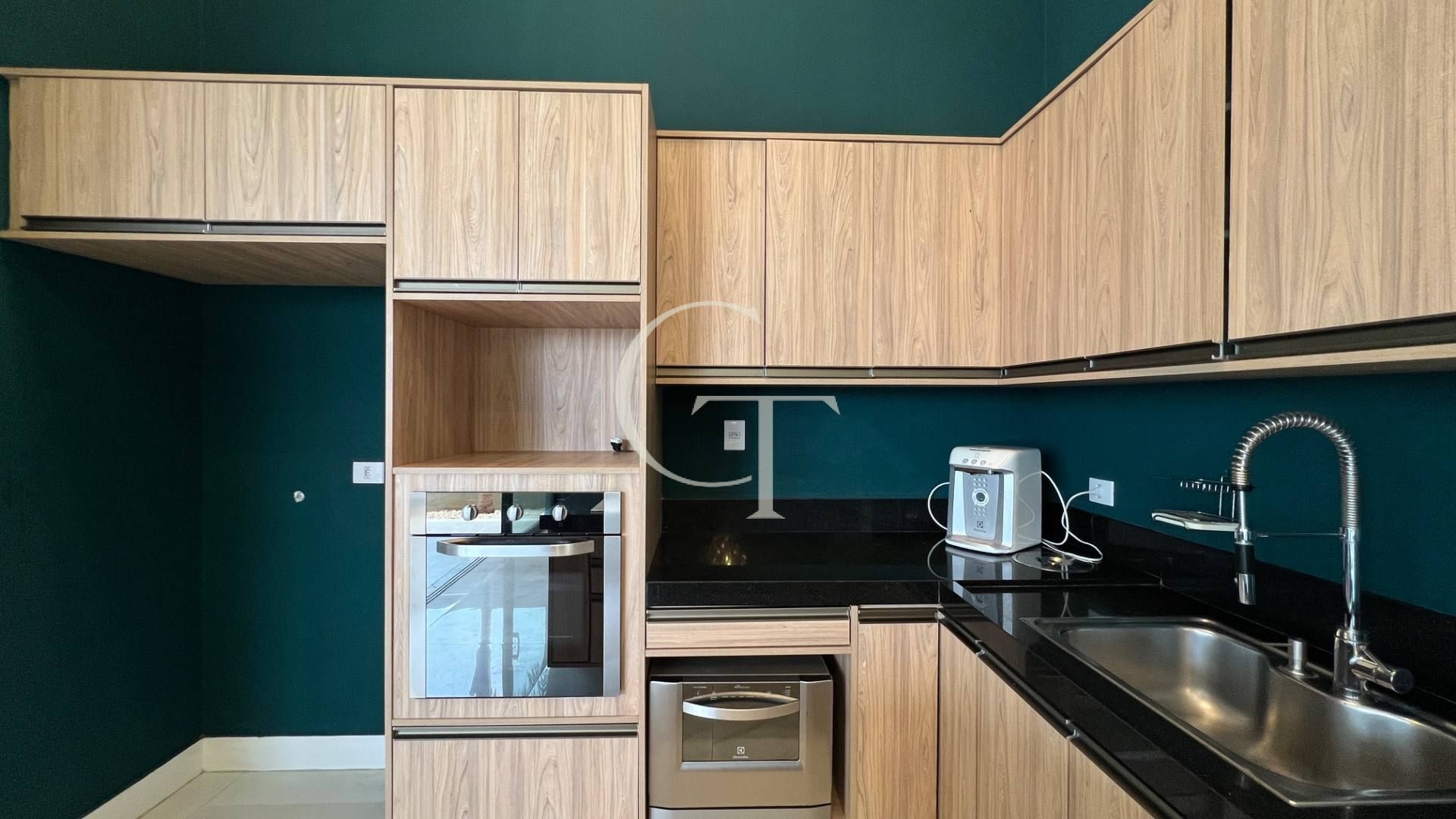 - Cozinha planejada equipada com cooktop, coifa e forno embutido.