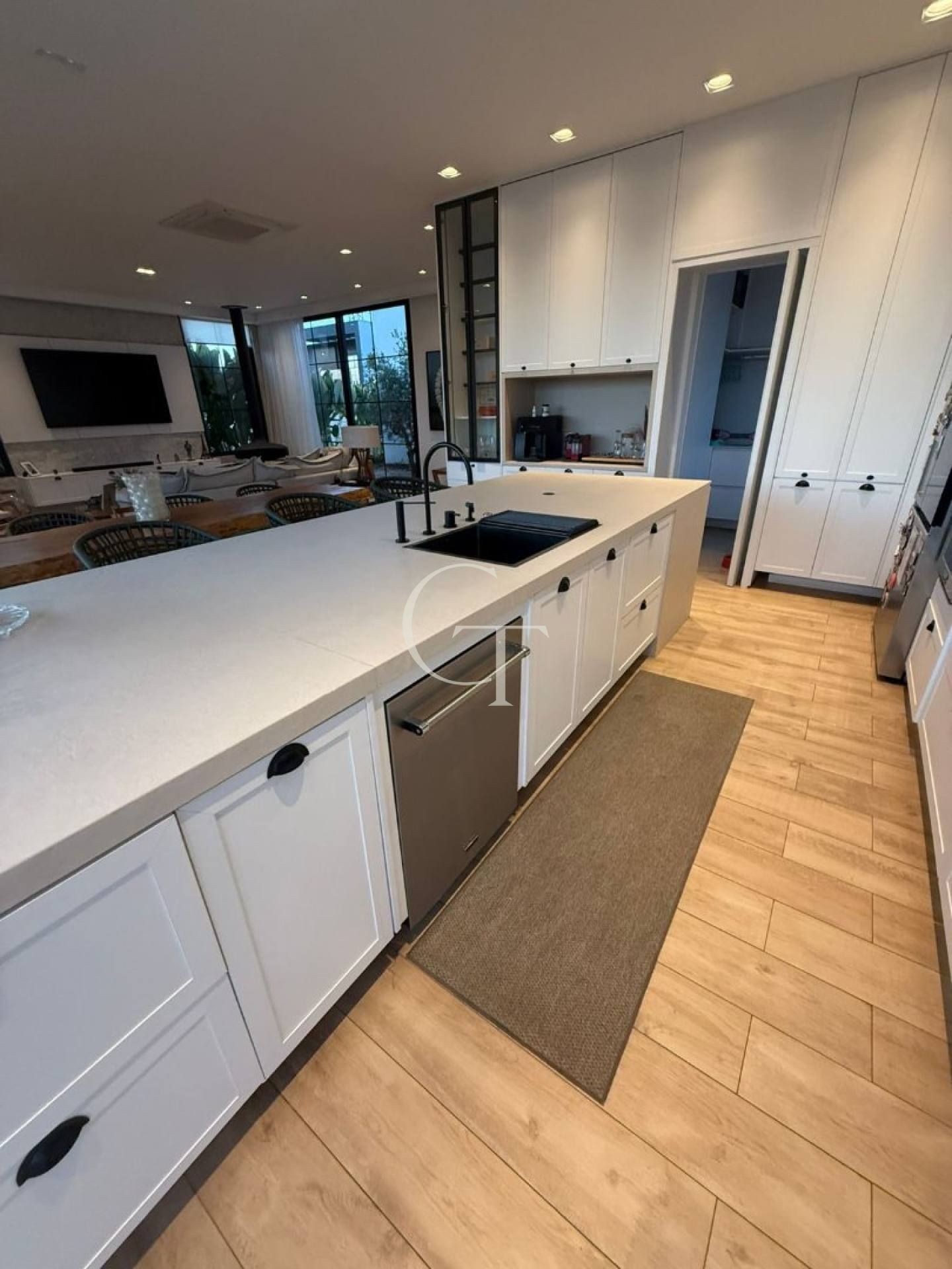 A área social traz integração total: living, jantar, cozinha e espaço gourmet se conectam em um cenário perfeito para receber. Grandes portas de vidro emolduram a vista permanente para o verde, enquanto a lareira e o sistema de climatização quente e frio garantem conforto em todas as estações.