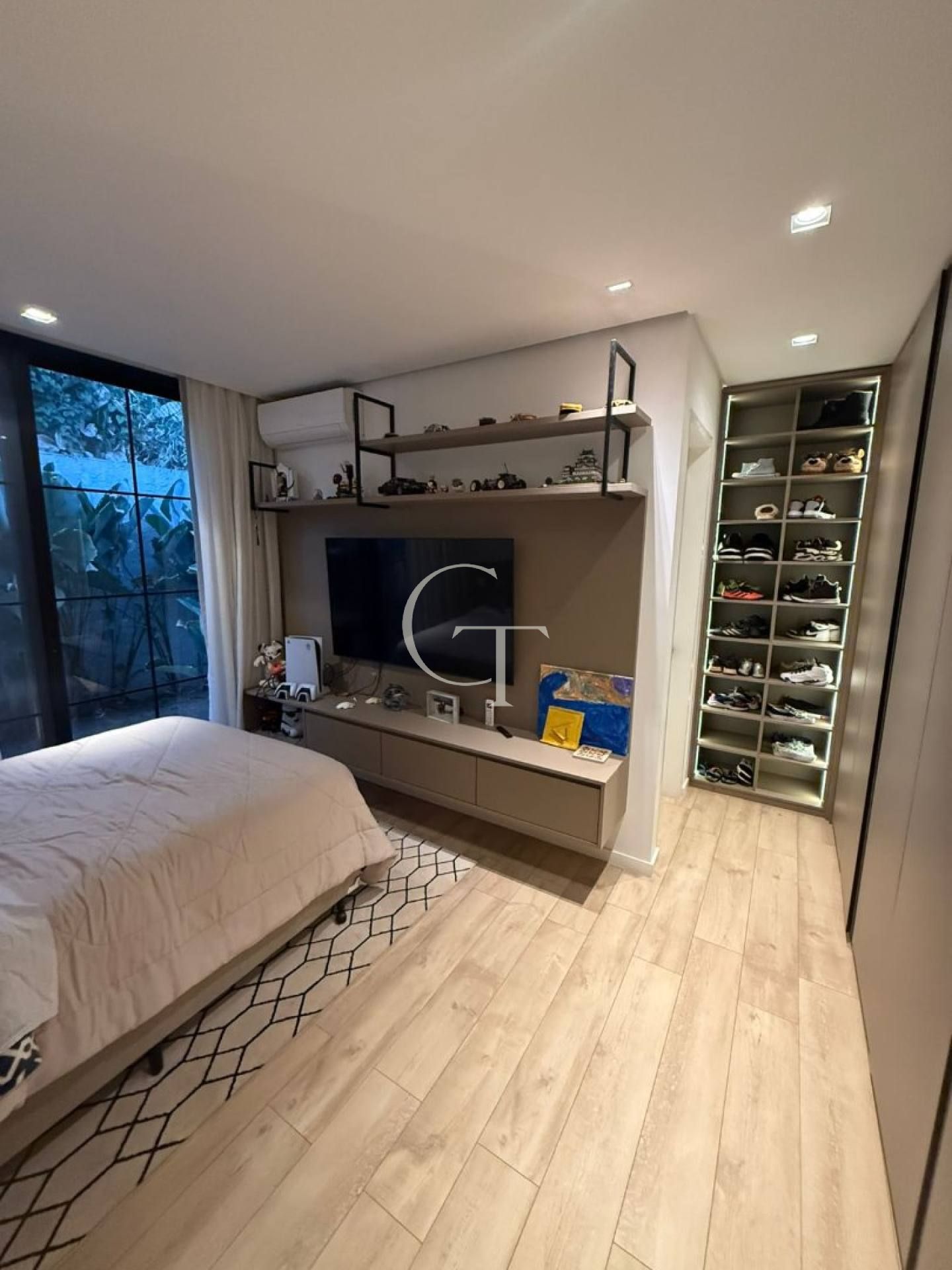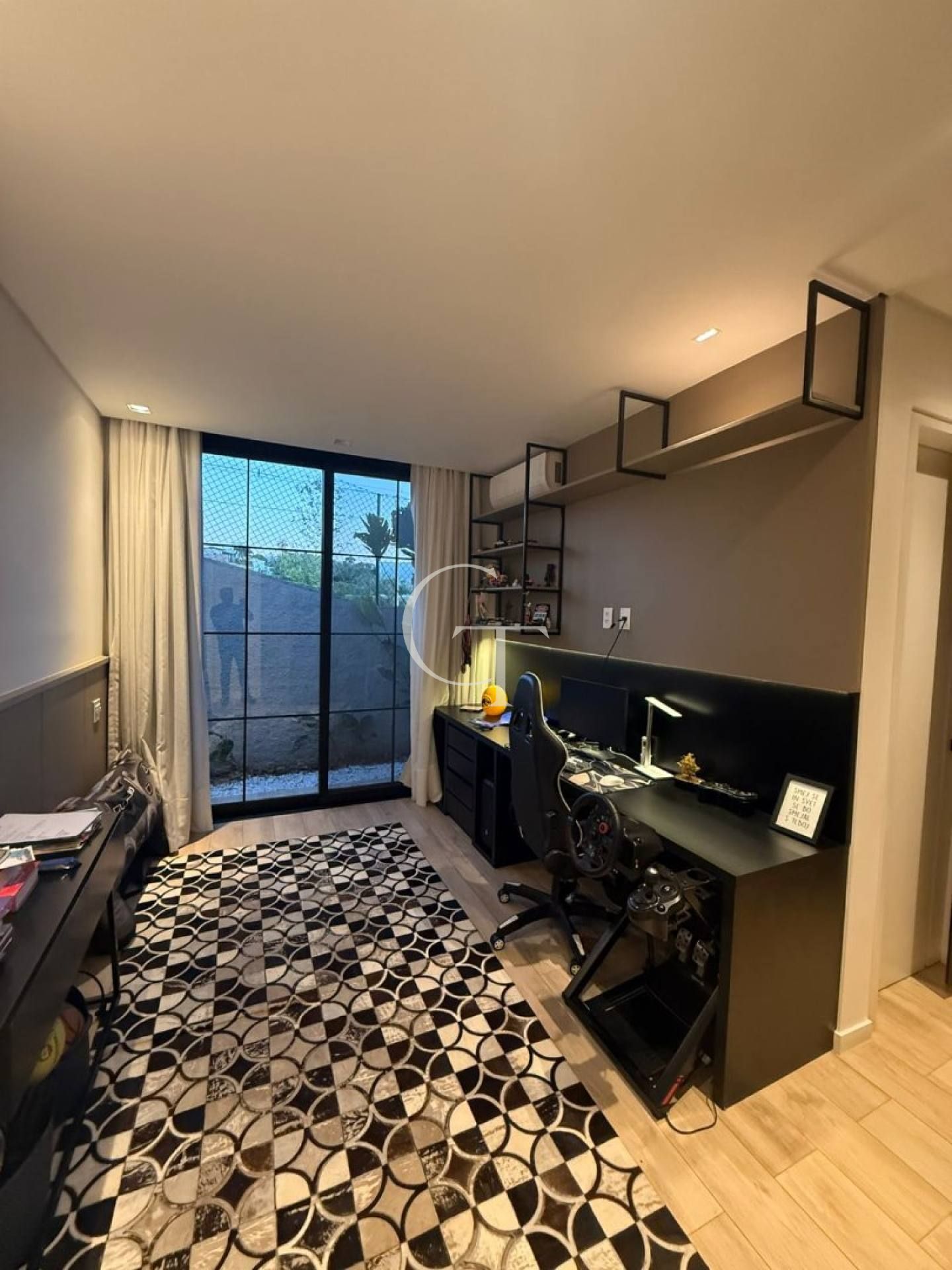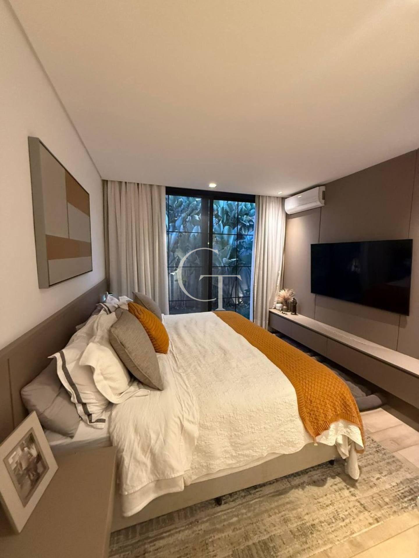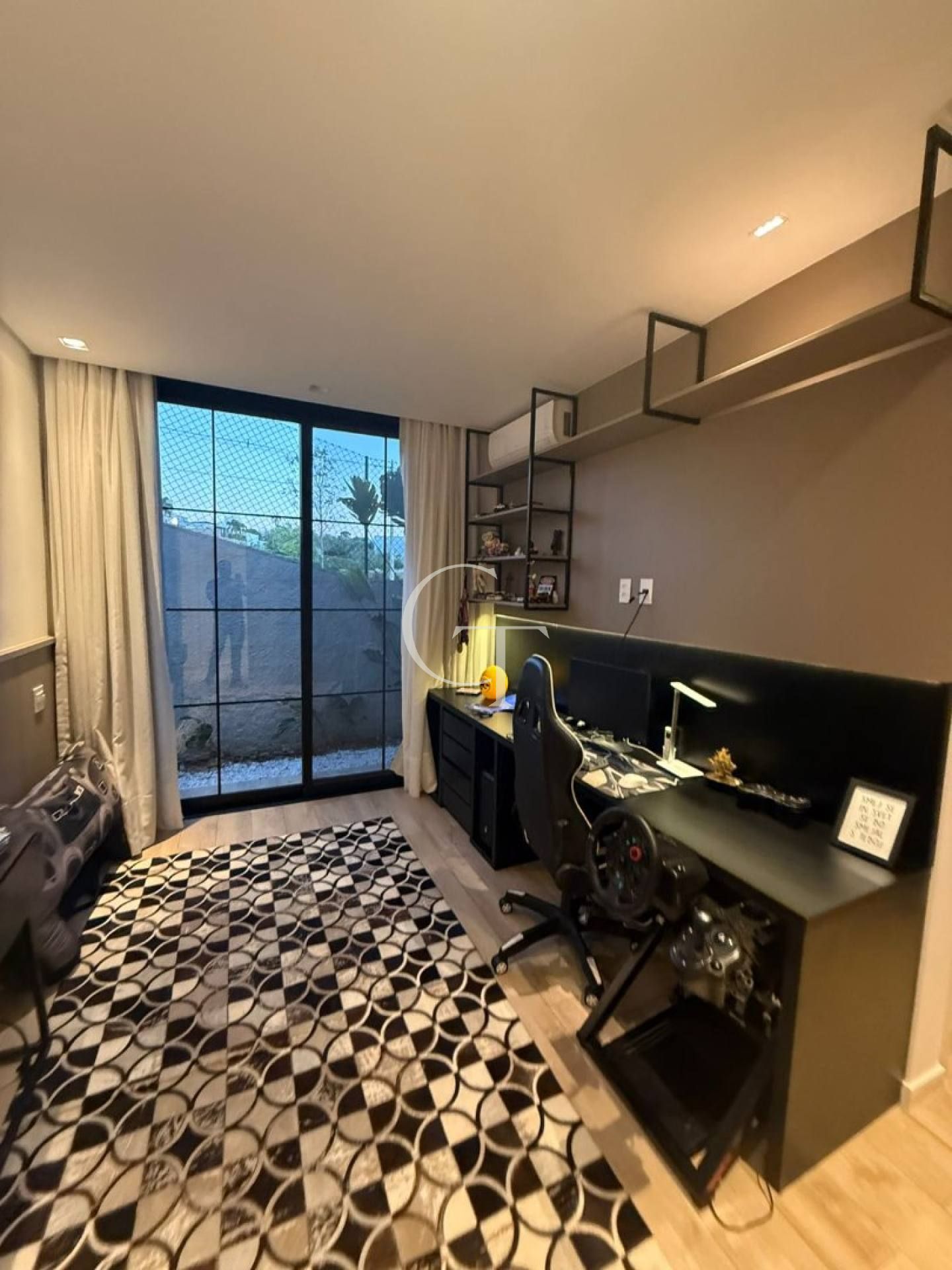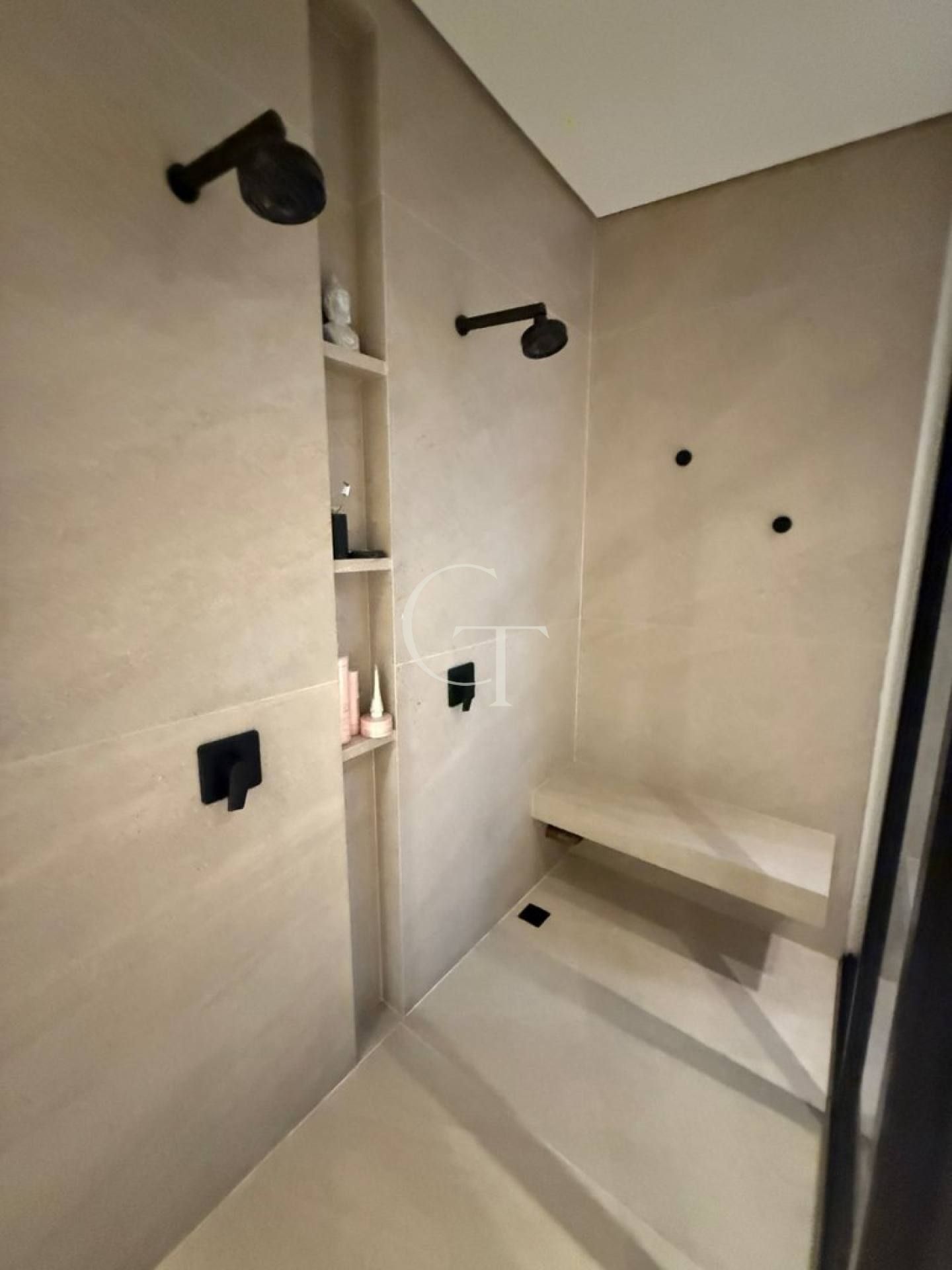 Cada detalhe desta residência foi pensado para unir elegância, bem-estar e tecnologia. São 3 suítes privativas, todas climatizadas, com armários sob medida, persianas automatizadas e iluminação projetada para valorizar cada ambiente. A master é um verdadeiro refúgio: closet amplo, banho com banheira de imersão voltada a um jardim exclusivo e sauna integrada para momentos de relaxamento.