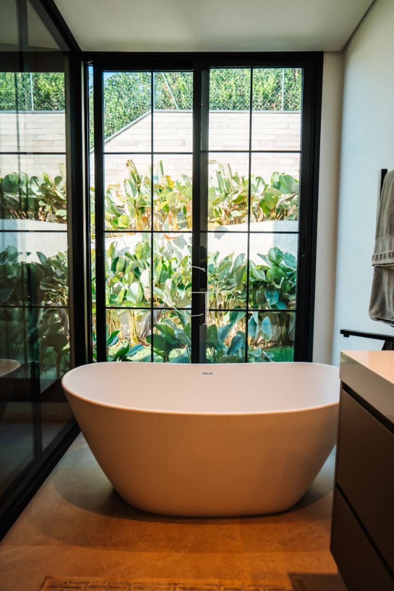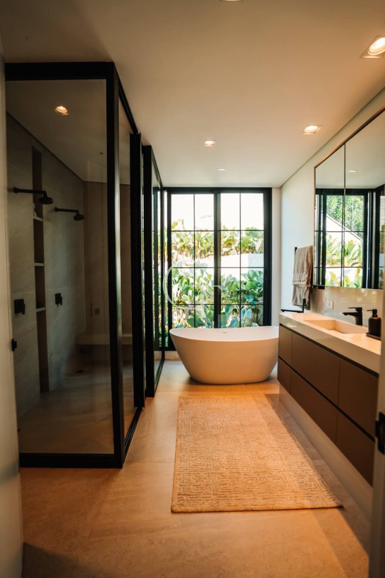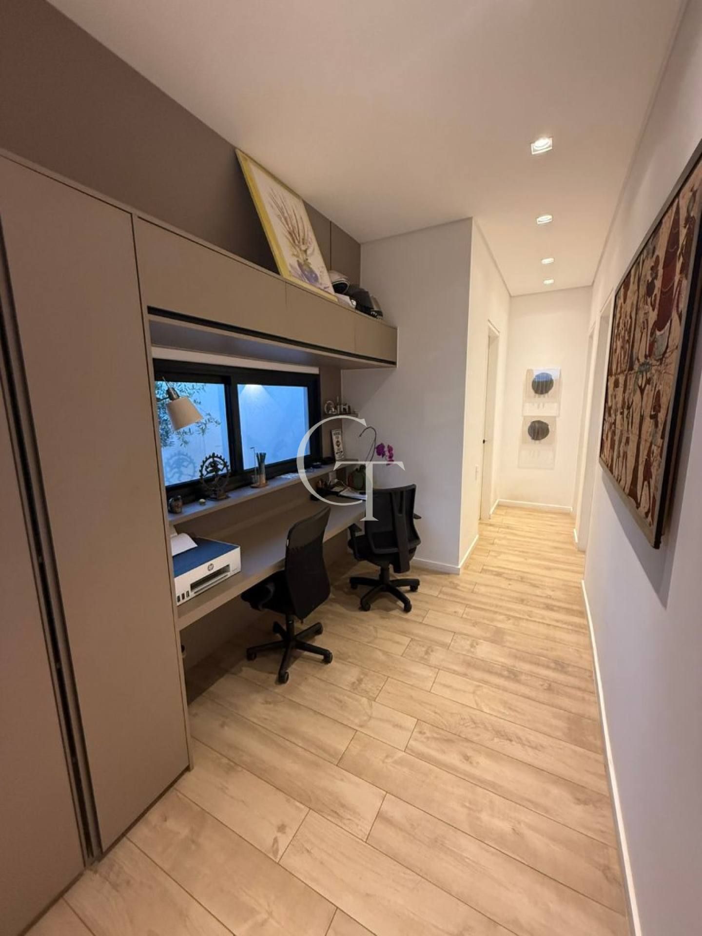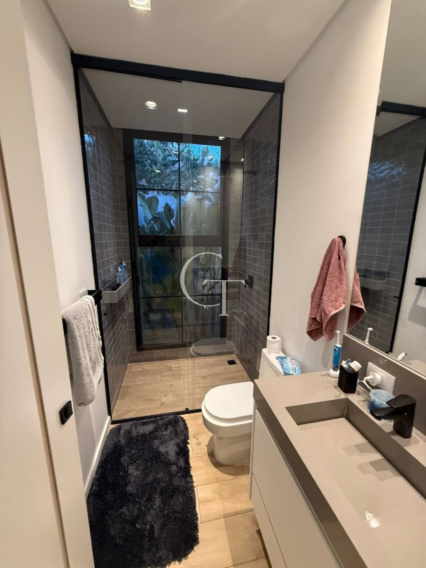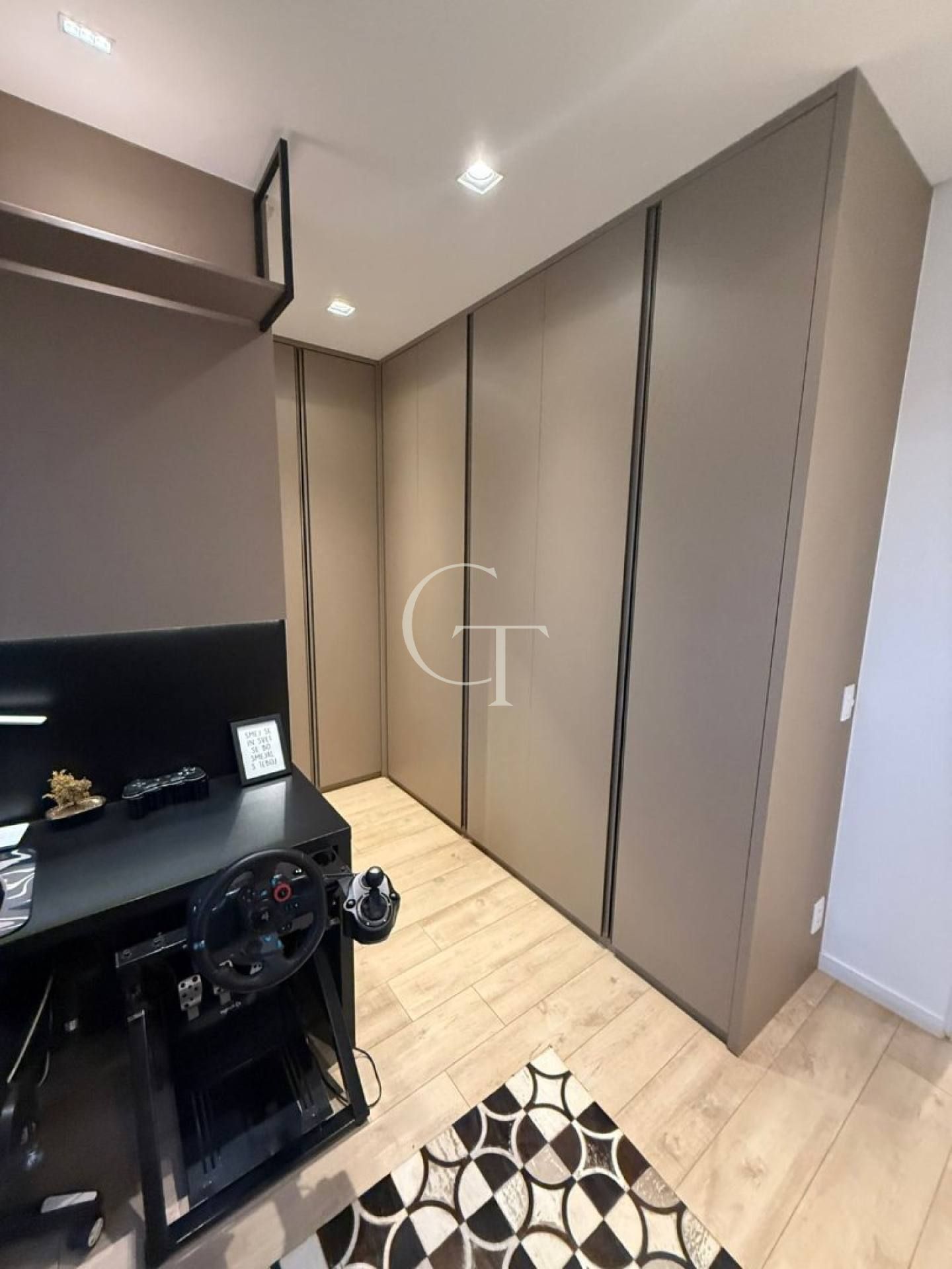 Cada detalhe desta residência foi pensado para unir elegância, bem-estar e tecnologia. São 3 suítes privativas, todas climatizadas, com armários sob medida, persianas automatizadas e iluminação projetada para valorizar cada ambiente. A master é um verdadeiro refúgio: closet amplo, banho com banheira de imersão voltada a um jardim exclusivo e sauna integrada para momentos de relaxamento.