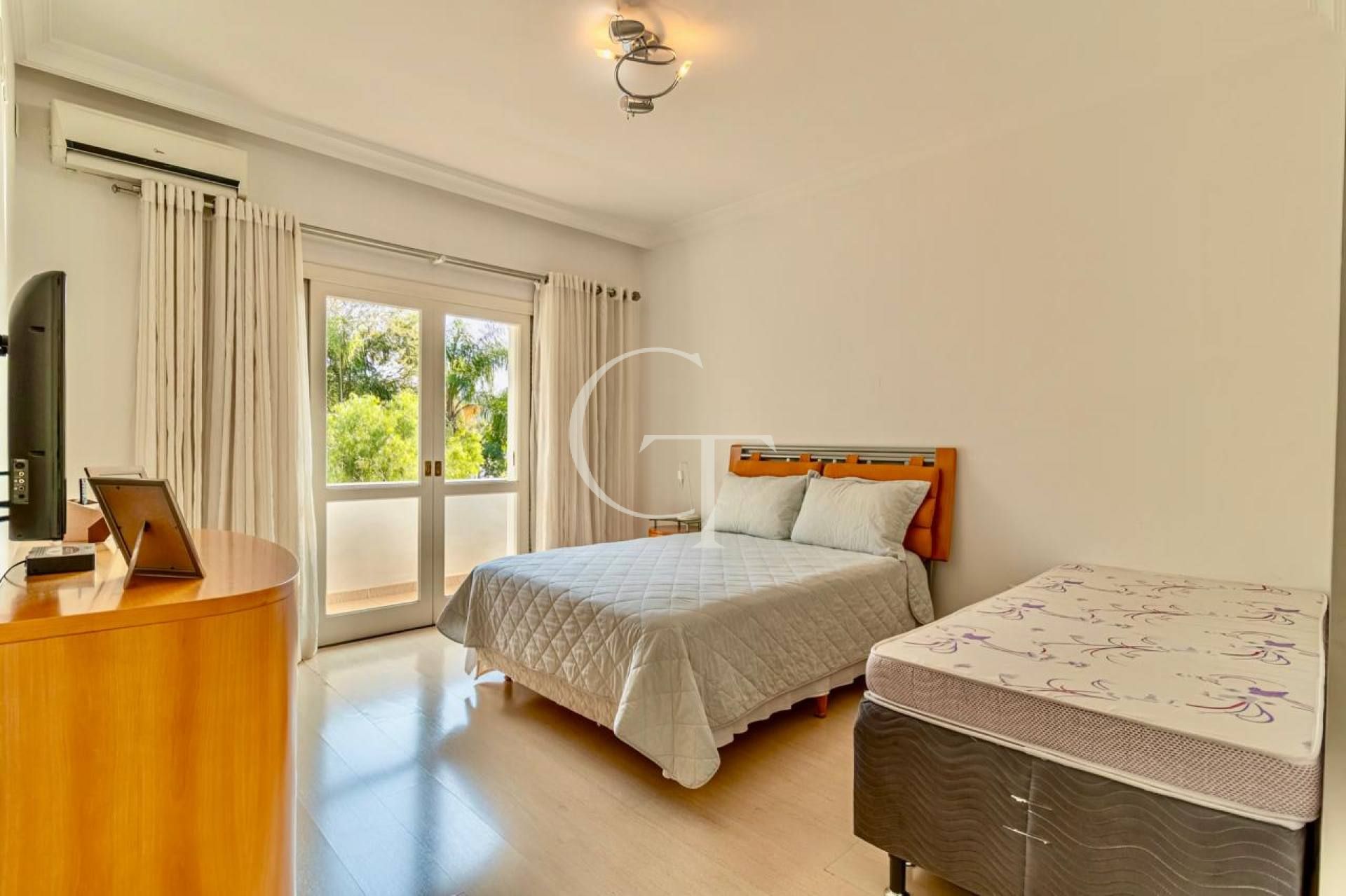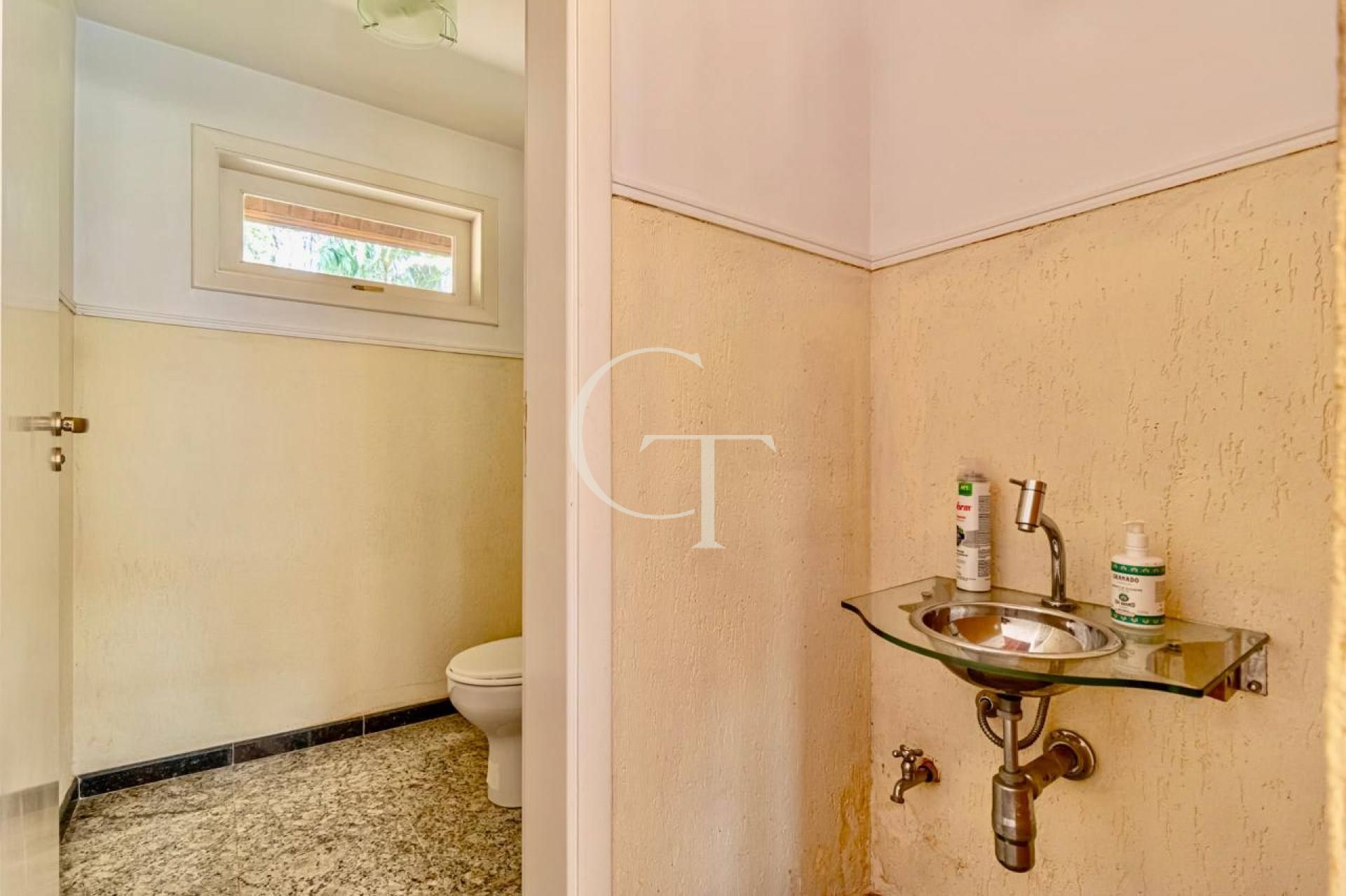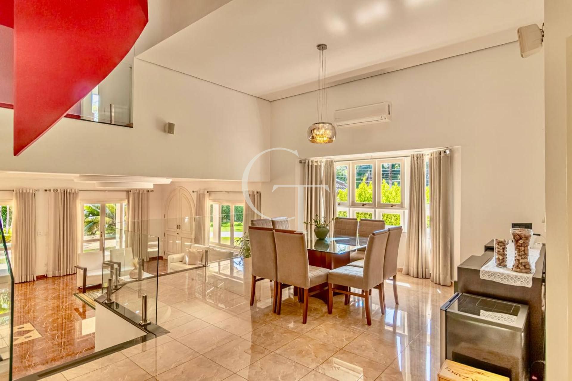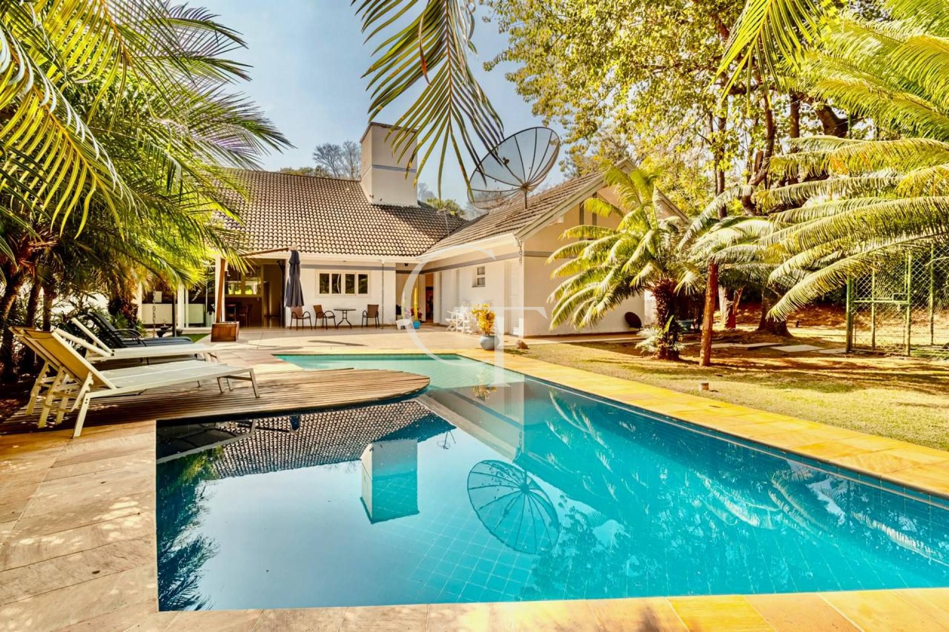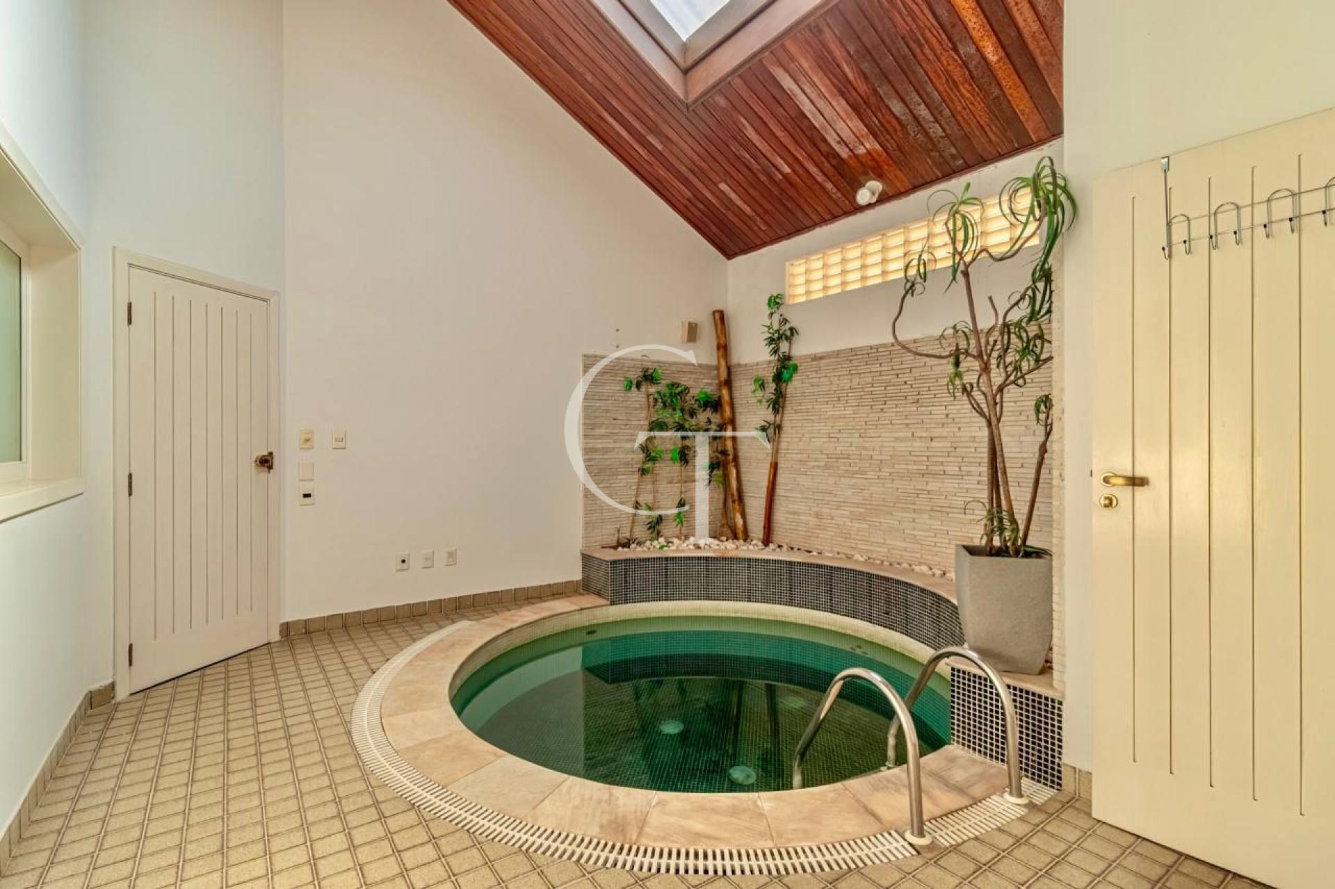 A residência conta ainda com escritório privativo, adega climatizada, lareira, ar-condicionado, sistema de aquecimento solar e a gás, alarme e jardim paisagístico impecável. Garagem coberta para 4 veículos complementa o projeto.