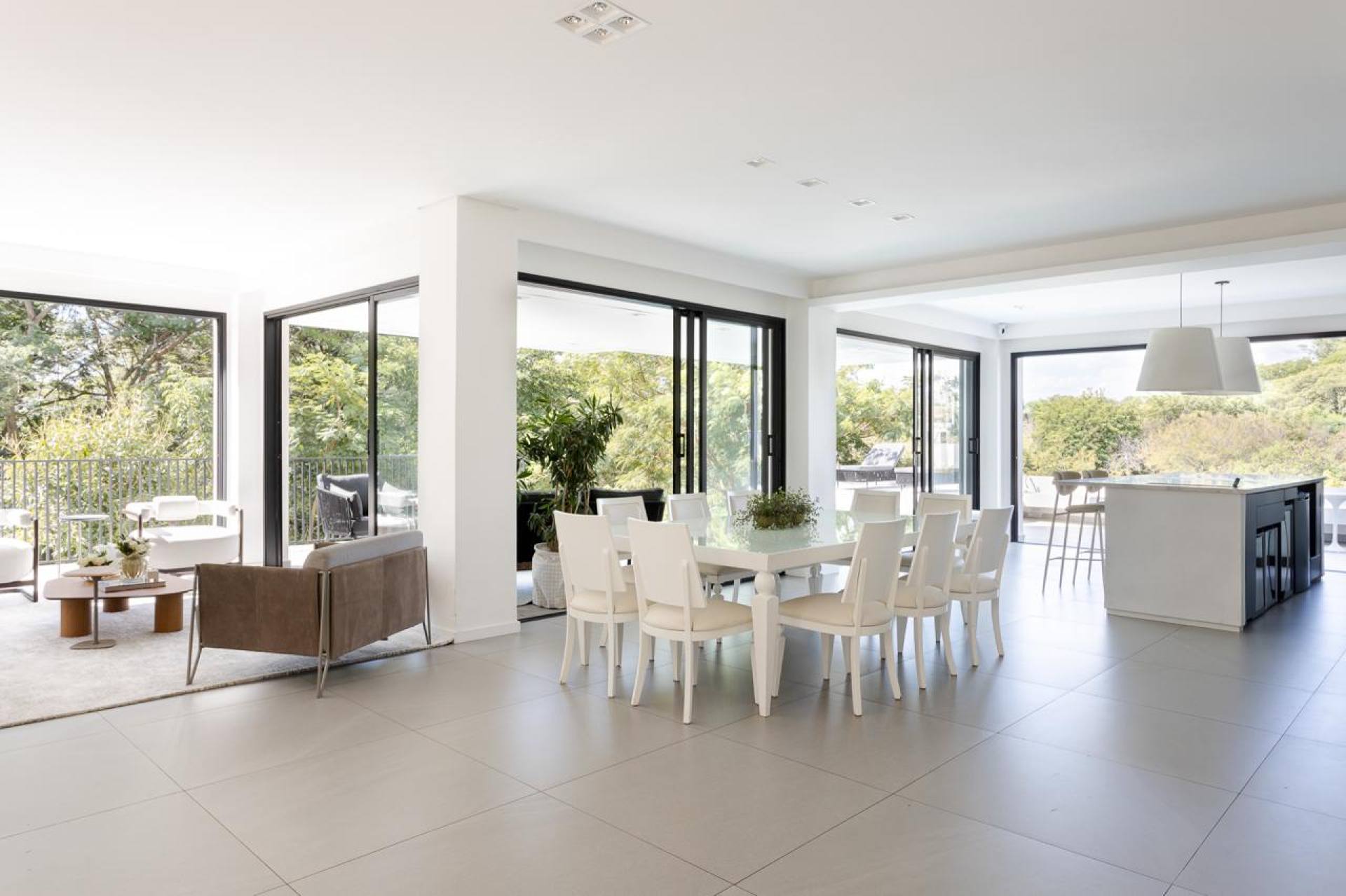 Suíte de hóspedes, living integrado, sala de TV, sala de jantar, lavabo, cozinha com copa e lavanderia.