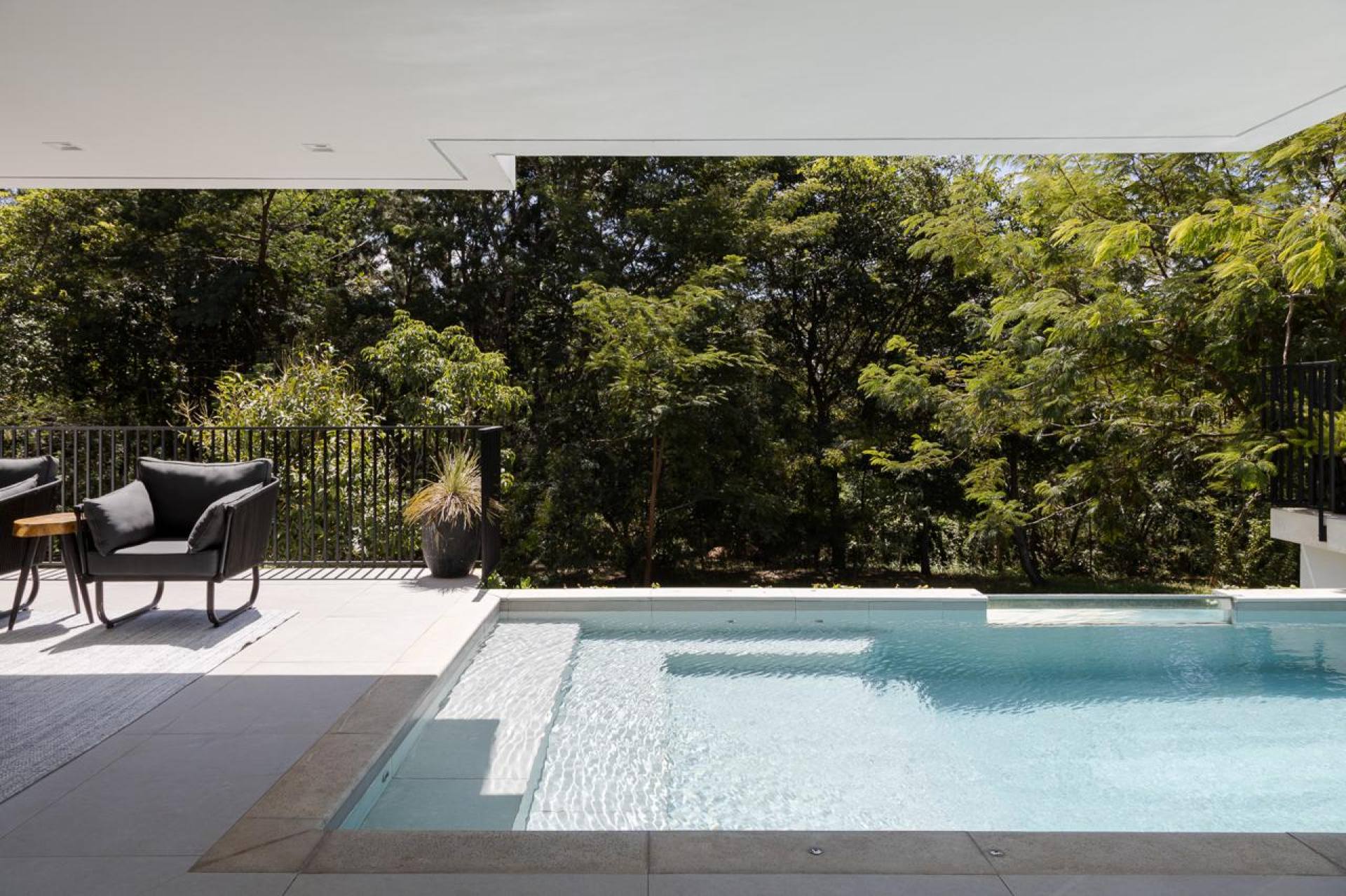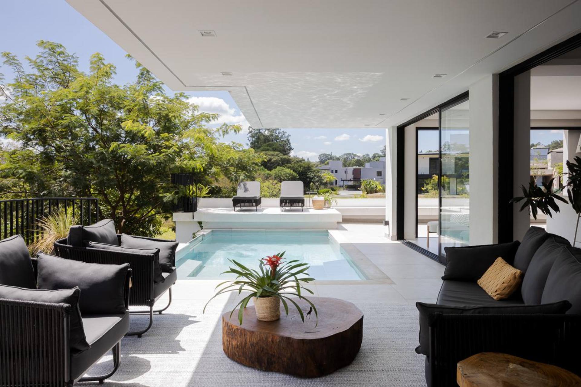 Na área externa, piscina com vista aberta, lounge coberto, chuveirão e banheiro de apoio — perfeitos para receber com estilo.