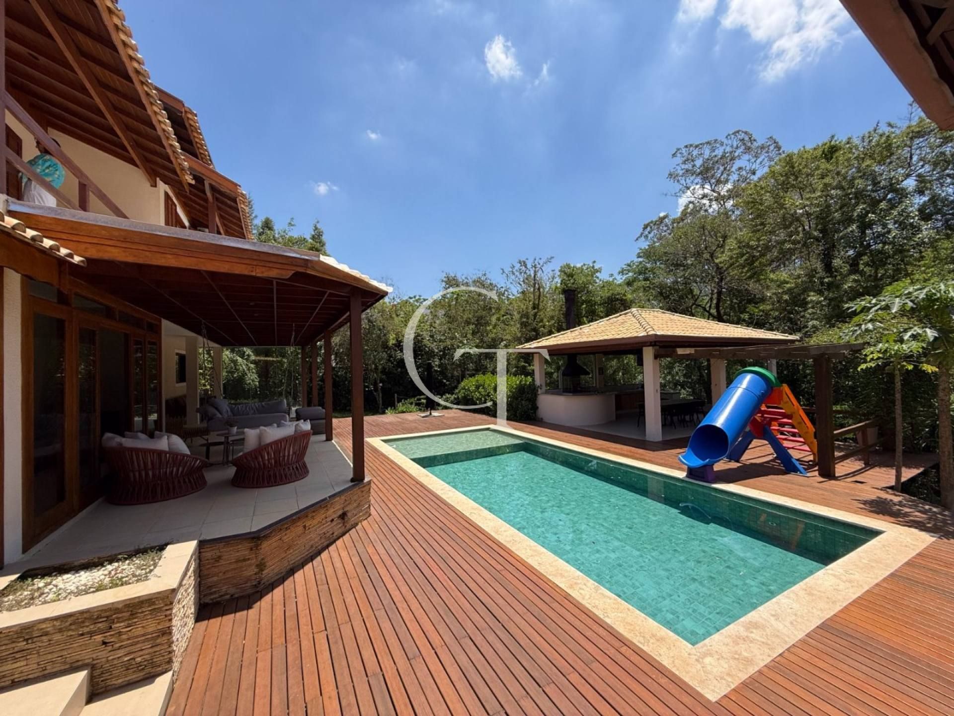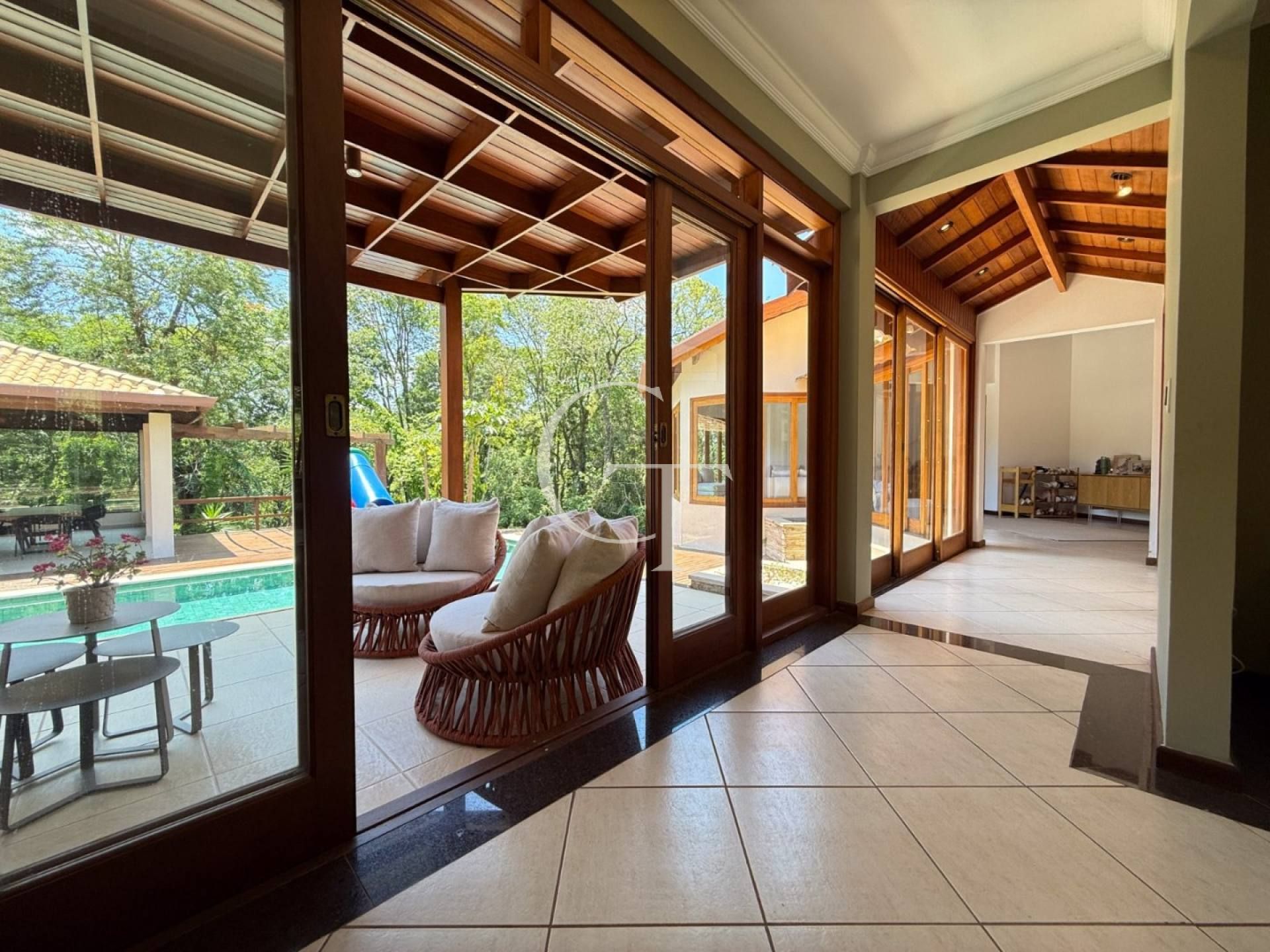 Imagine atravessar uma alameda arborizada e chegar a uma casa que respira campo, silêncio e sofisticação. O pôr do sol reflete no deck da piscina, a mata emoldura a vista e a arquitetura se integra à natureza. É assim viver aqui.