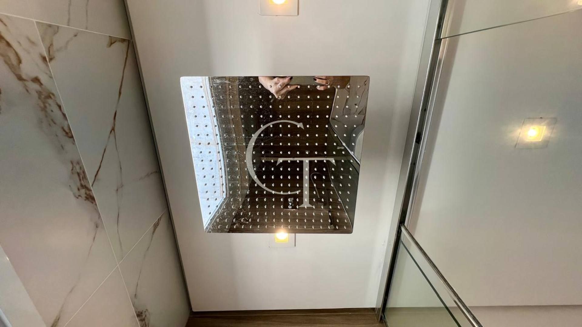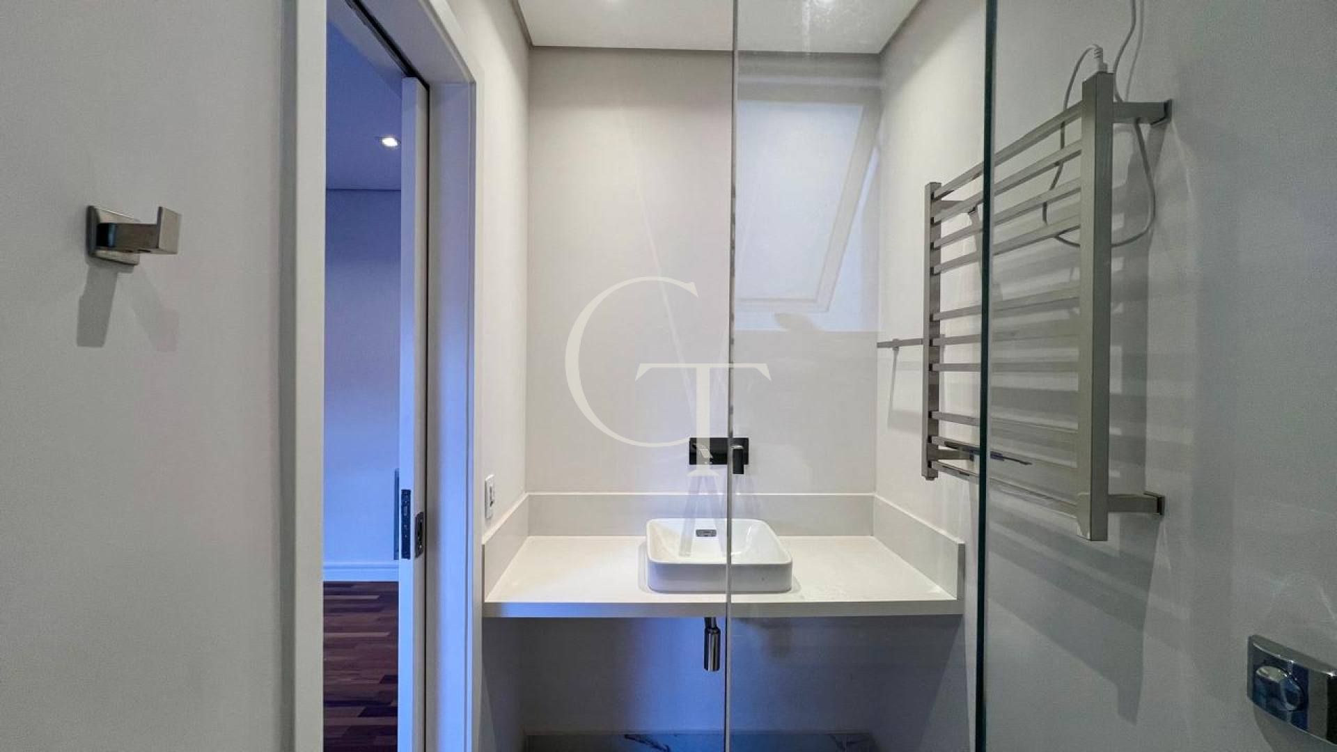 Ao entrar, a integração entre sala e cozinha em mármore crema marfim cria uma atmosfera acolhedora e contemporânea. A área íntima, com piso de madeira, traz o calor e o silêncio que toda família procura. São três dormitórios, todos suítes, com bancadas em quartzo branco, cubas Koller e toalheiros térmicos que elevam o padrão de conforto.
