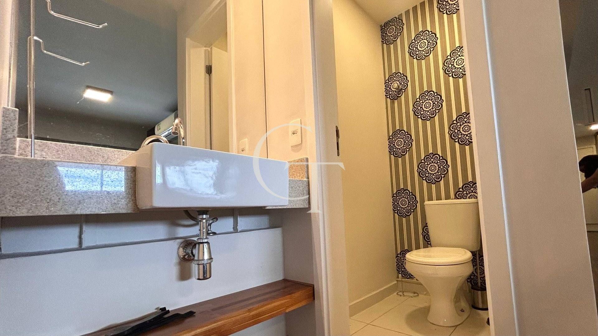 • 2 dormitórios com armários e ar-condicionado, sendo ambos suítes, 1 suíte master com sacada e TV