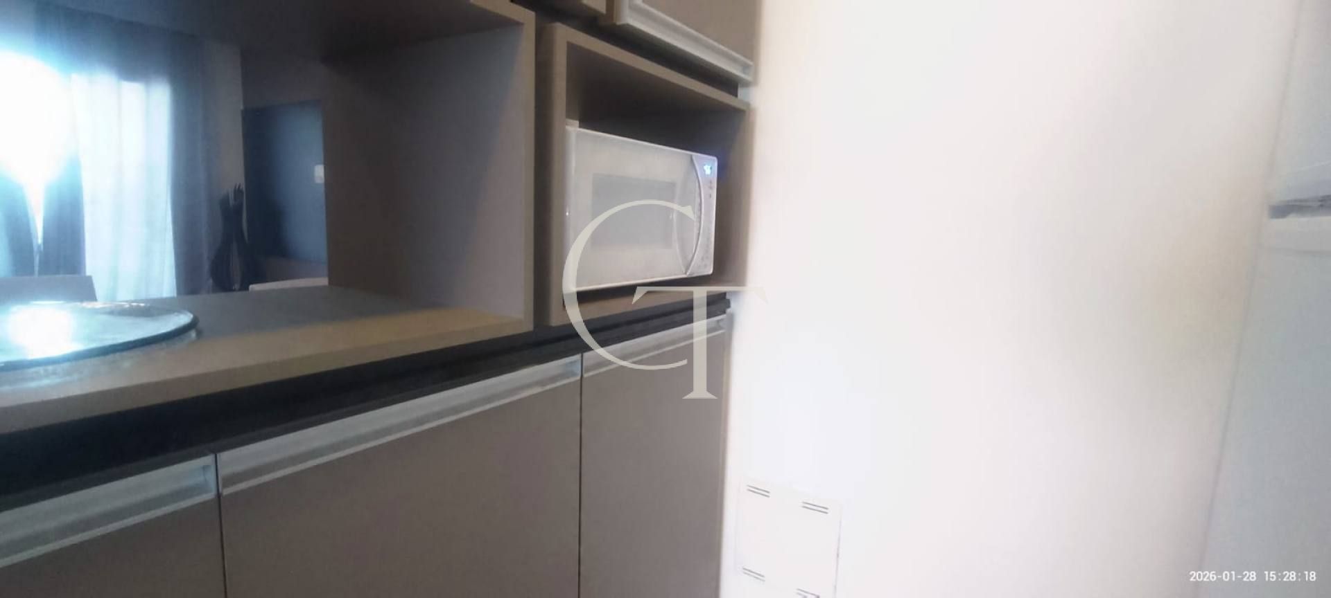 * Cozinha completa, com armários planejados, geladeira, fogão e micro-ondas