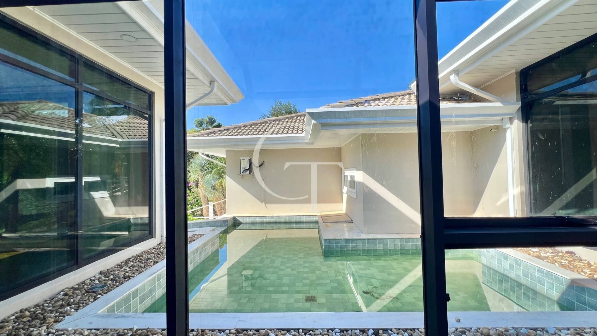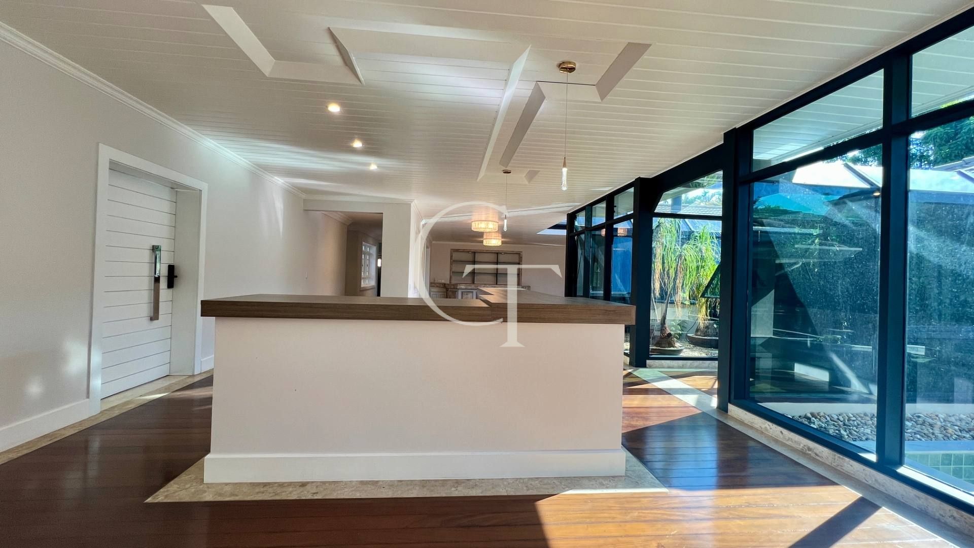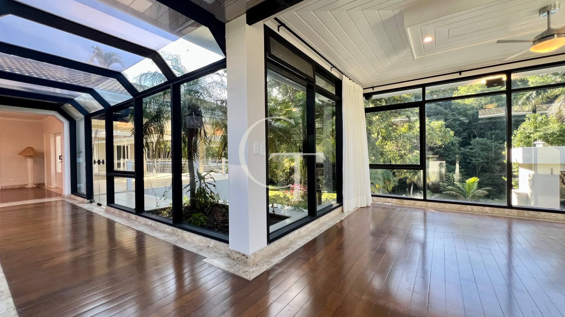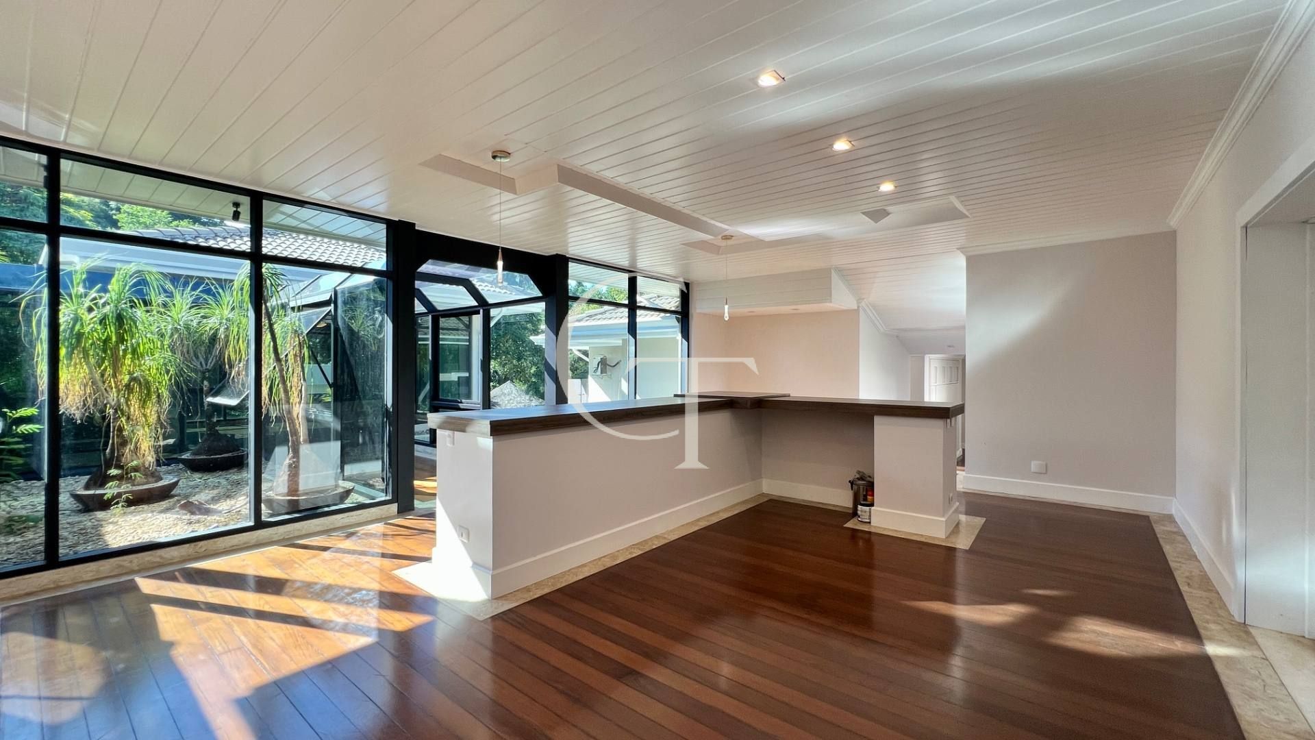 Implantada em dois lotes, a arquitetura revela volumetria elegante, linhas contemporâneas e grandes panos de vidro que dissolvem os limites entre interior e natureza. A luz percorre a casa com precisão. O verde entra. A vista permanece.