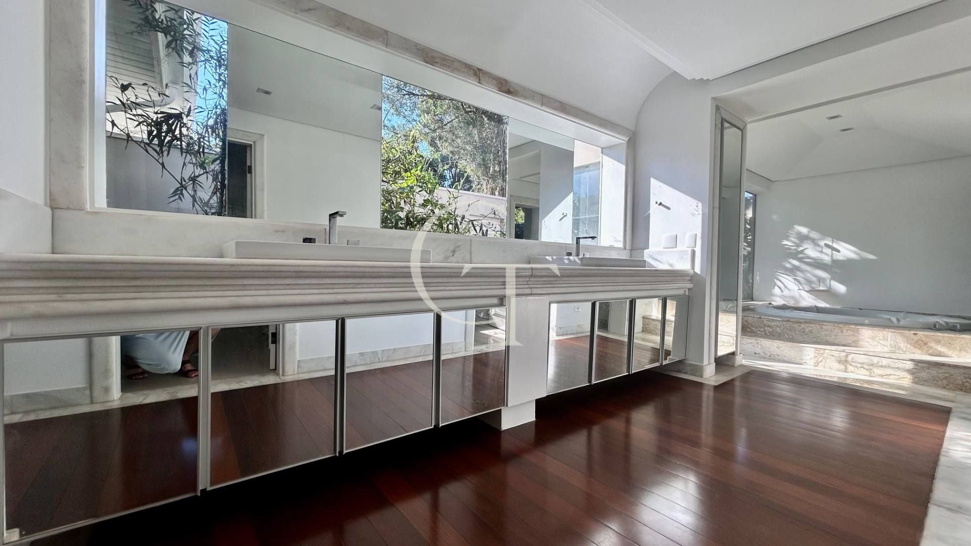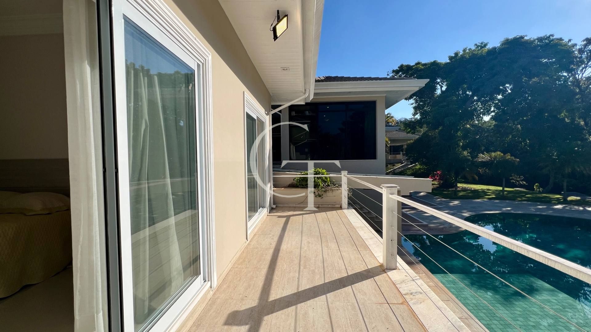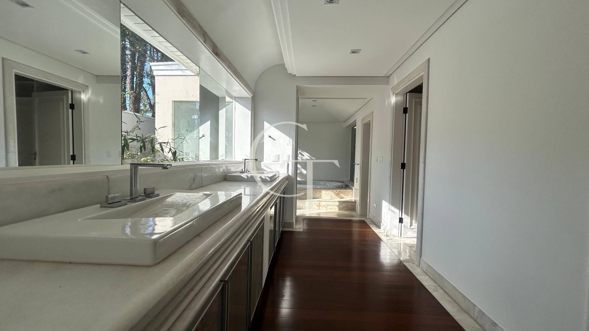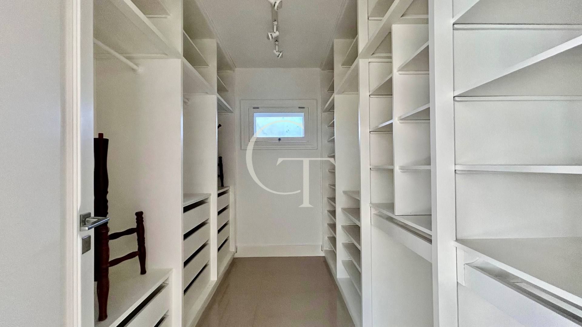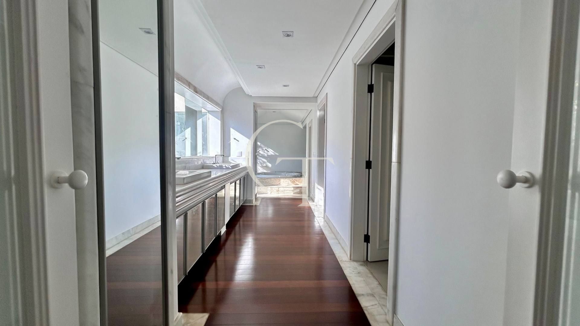 São 2.200 m² de construção em um terreno de 4.588 m². Nove dormitórios, sendo cinco suítes. A suíte master se impõe com closet duplo e sala de banho. Demais suítes com varandas e enquadramentos privilegiados do paisagismo e do lago.