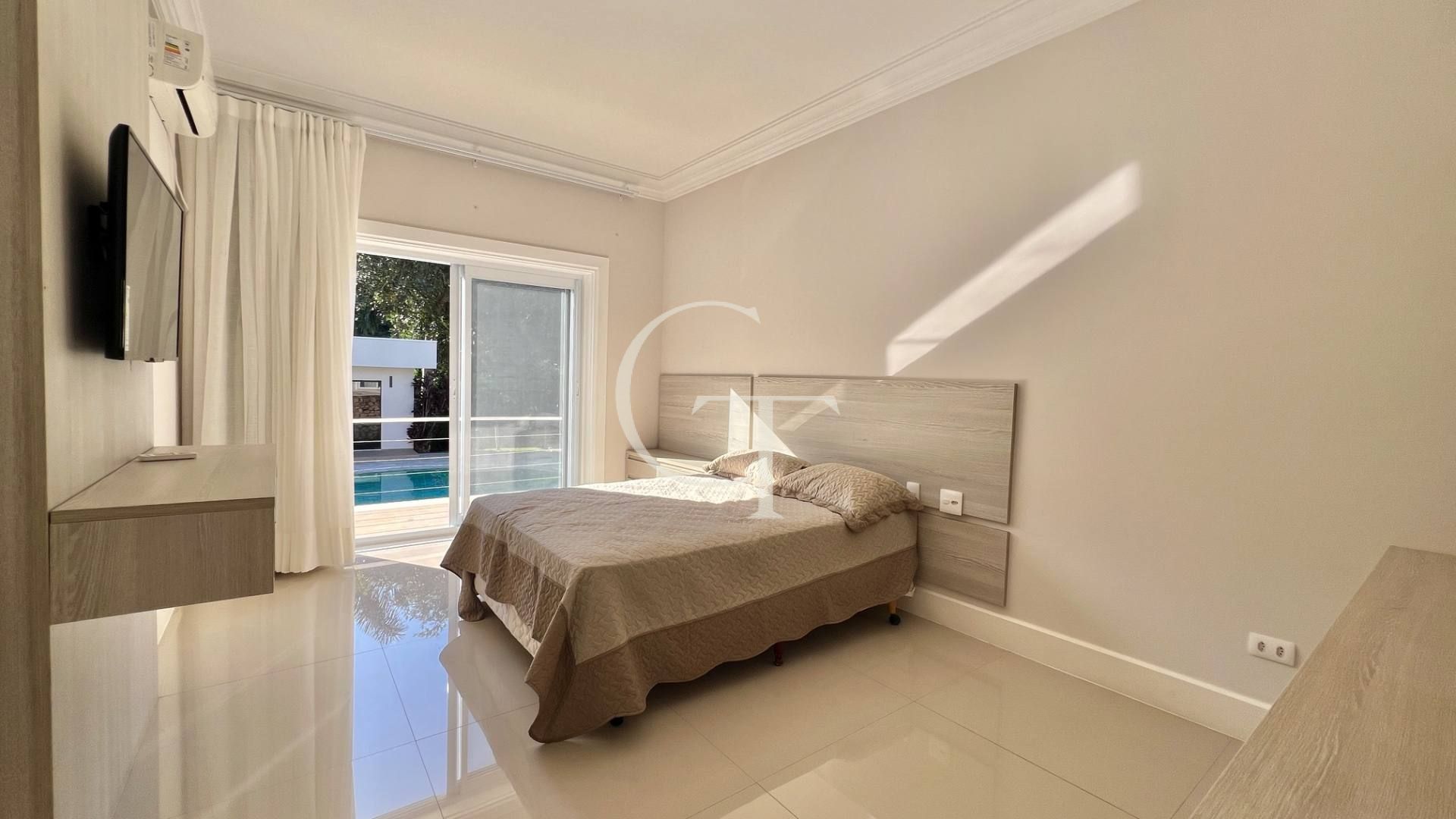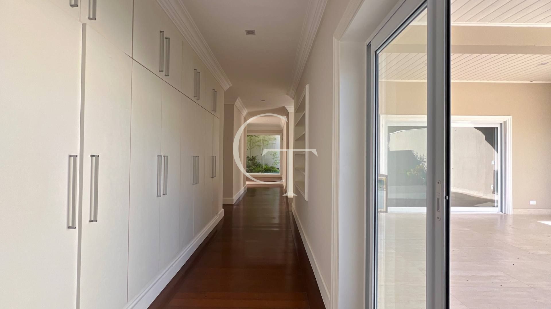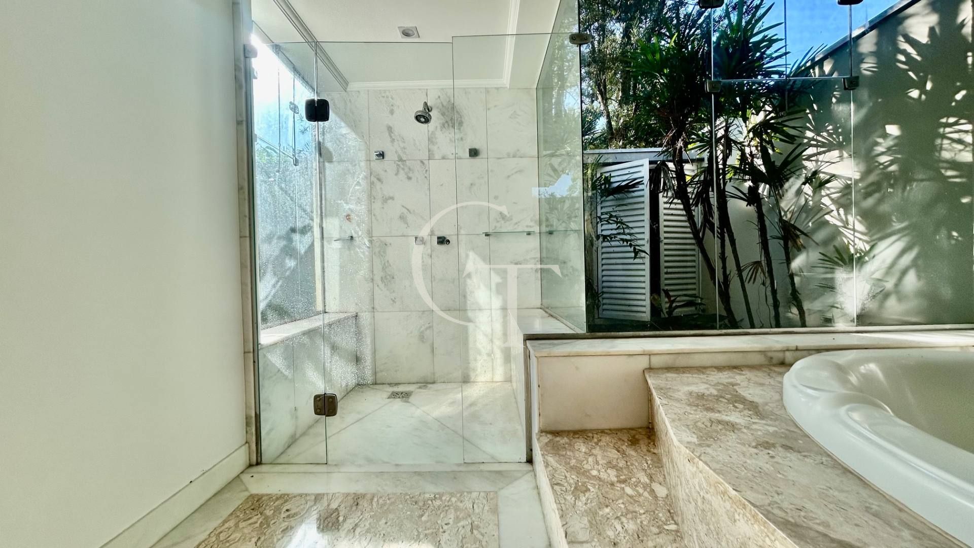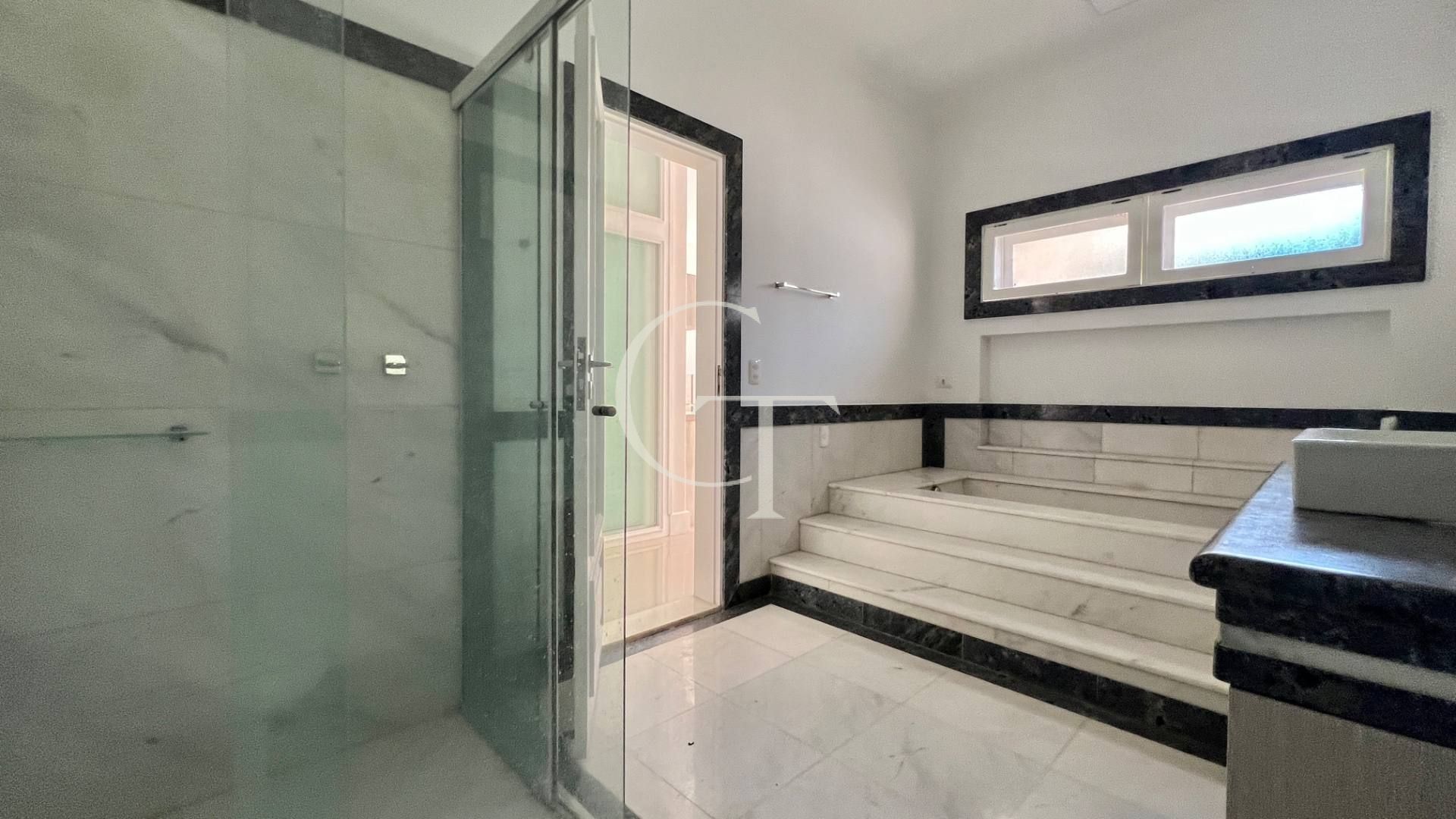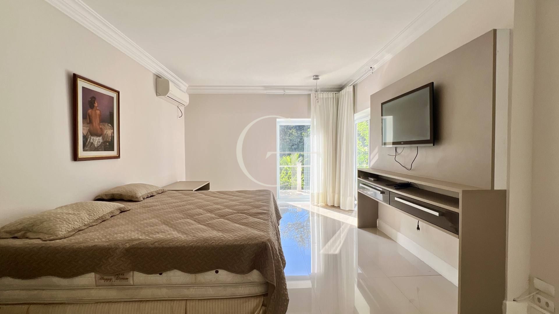 São 2.200 m² de construção em um terreno de 4.588 m². Nove dormitórios, sendo cinco suítes. A suíte master se impõe com closet duplo e sala de banho. Demais suítes com varandas e enquadramentos privilegiados do paisagismo e do lago.