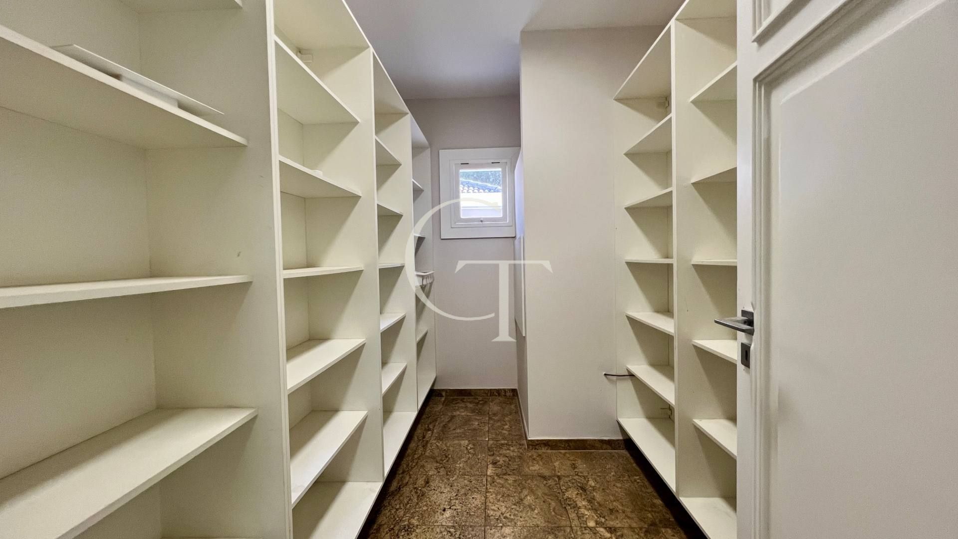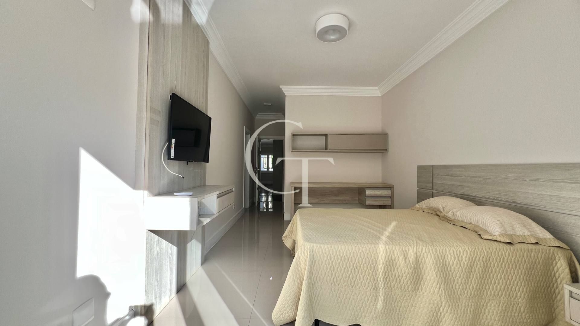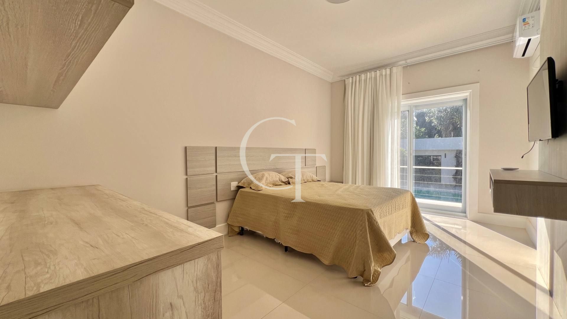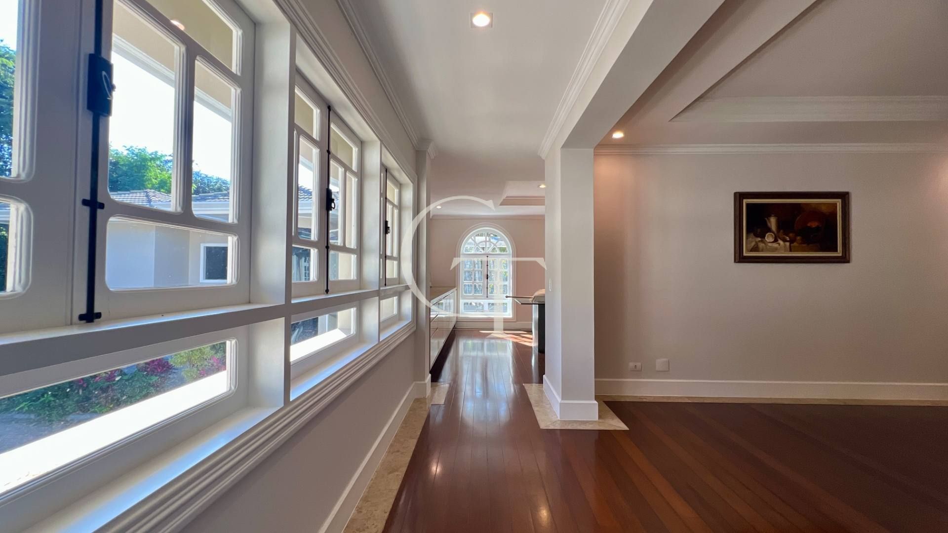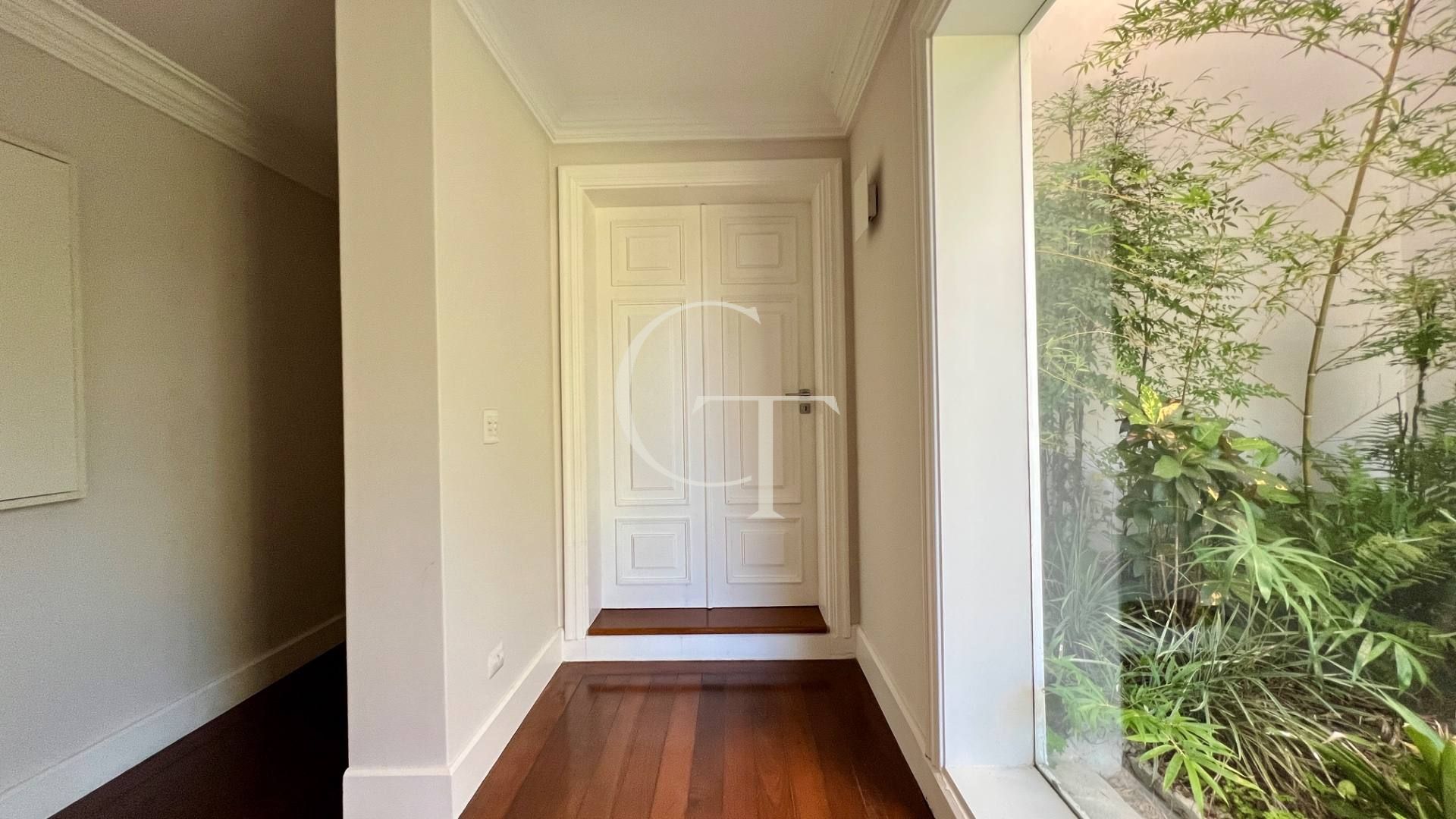 São 2.200 m² de construção em um terreno de 4.588 m². Nove dormitórios, sendo cinco suítes. A suíte master se impõe com closet duplo e sala de banho. Demais suítes com varandas e enquadramentos privilegiados do paisagismo e do lago.