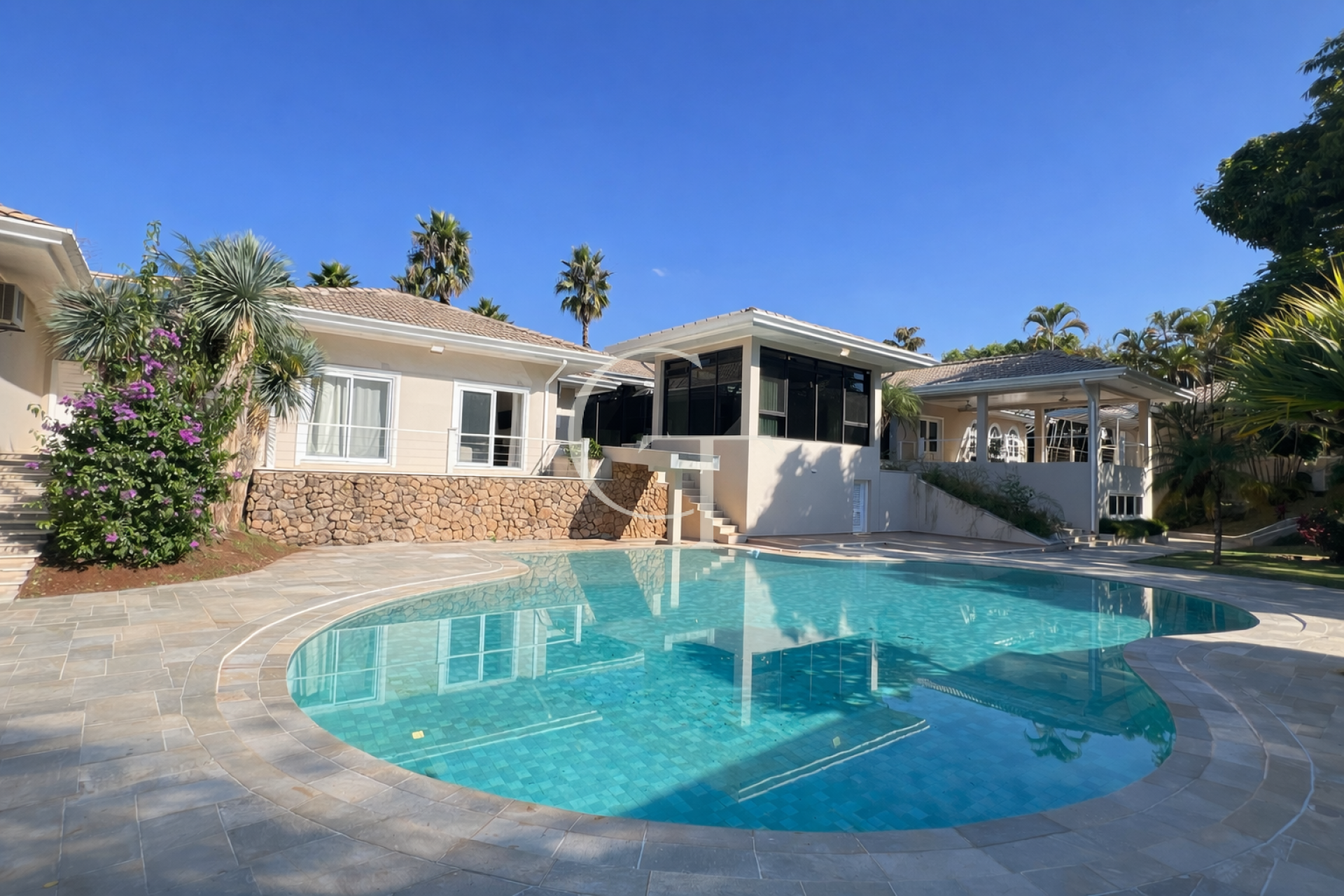A propriedade conta ainda com casa de hóspedes, casa de apoio, canil, garagem coberta para até 14 veículos, climatização, aquecimento solar, cisterna e um paisagismo consolidado com árvores frutíferas.